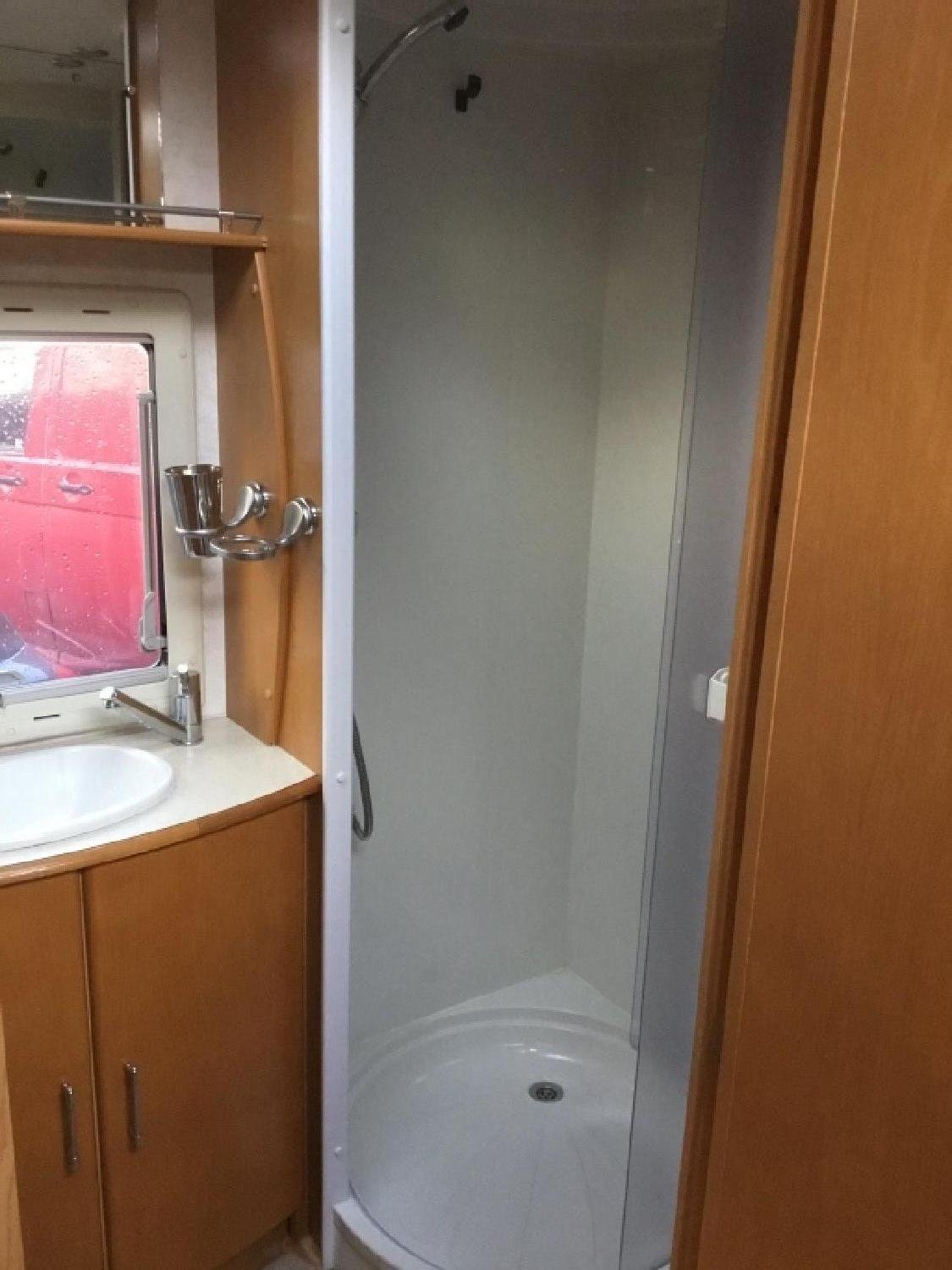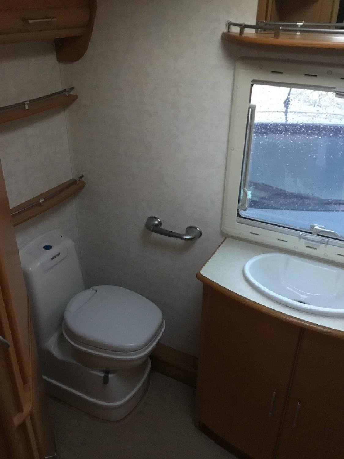 Full width end washroom , dometic shower & toilet