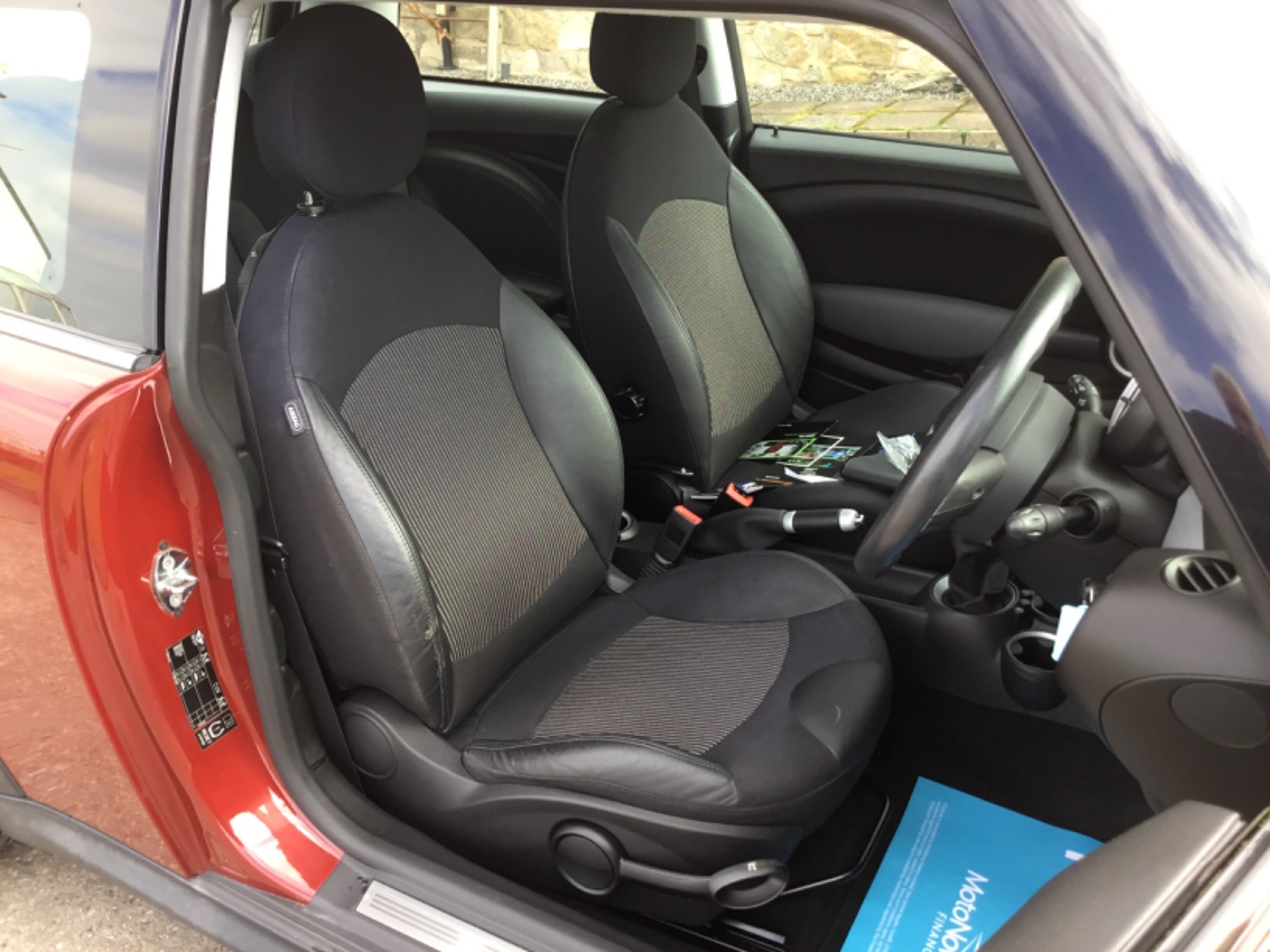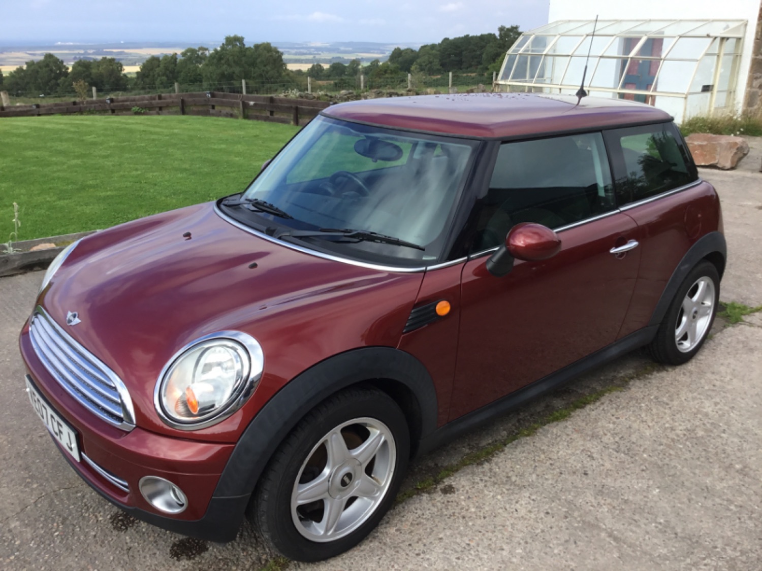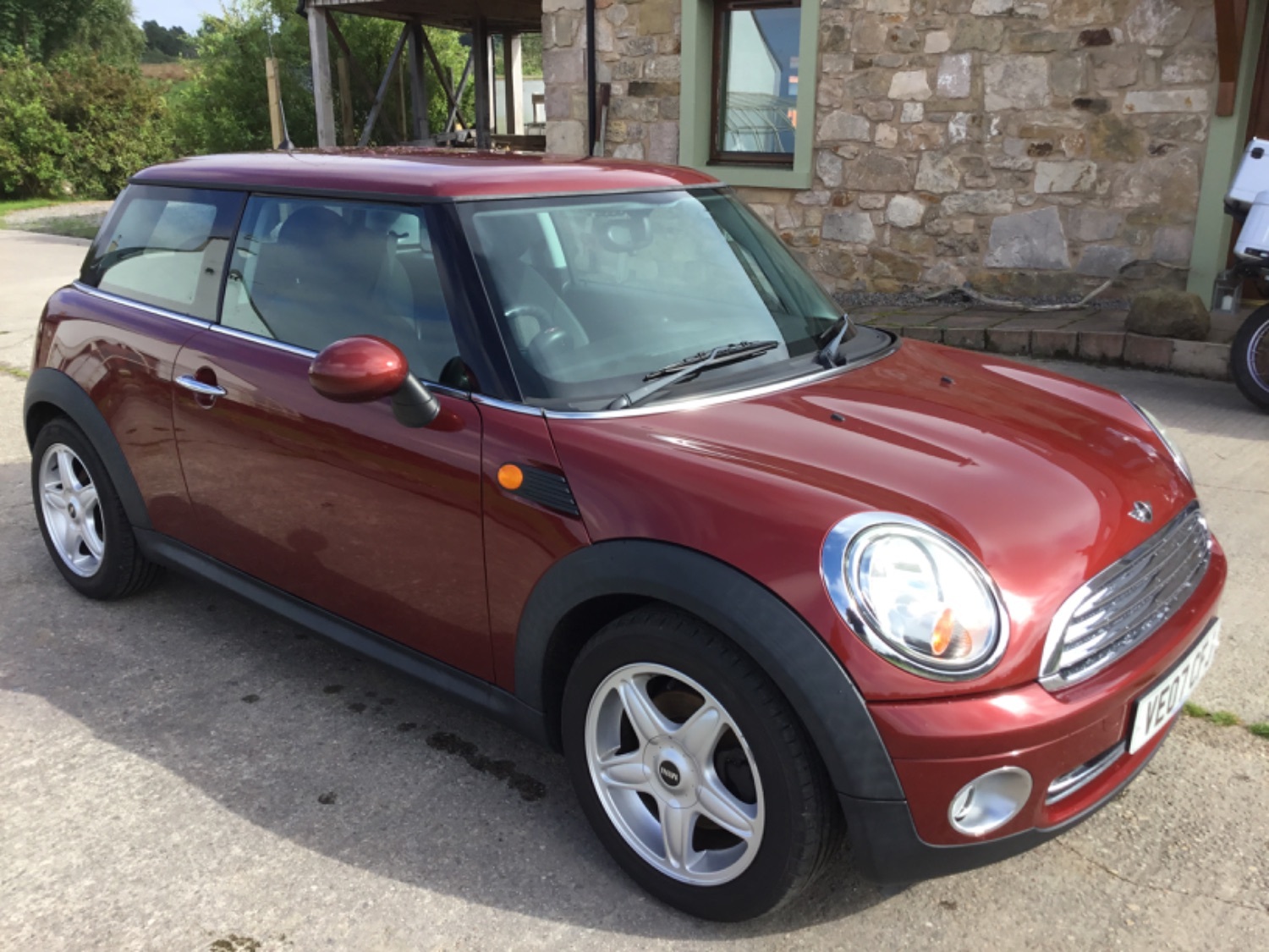 An extremely classy Mini Cooper in what must be the most desirable colour , mica night fire red with black 1/2 leather interior