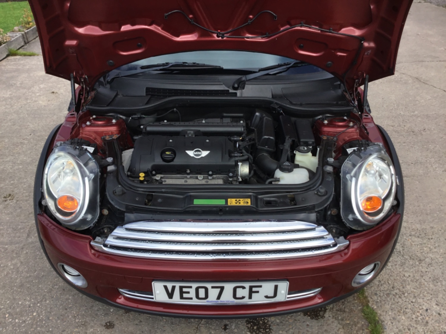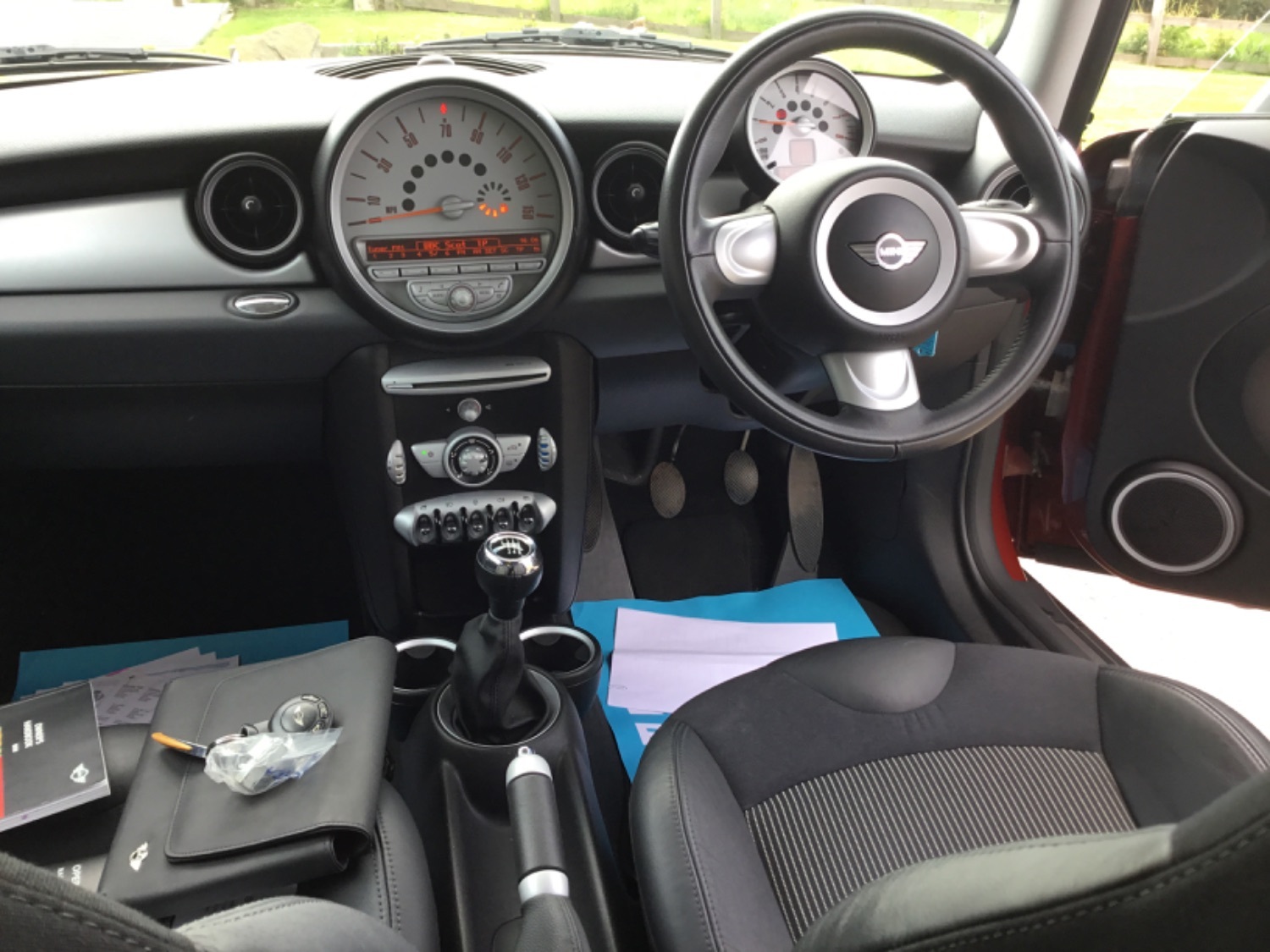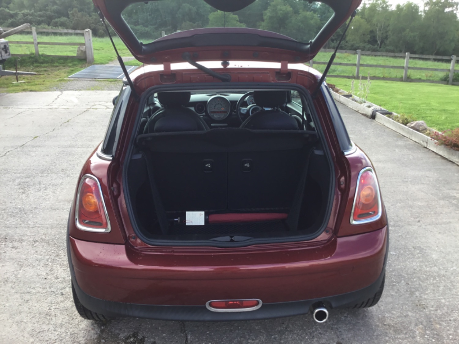 An extremely classy Mini Cooper in what must be the most desirable colour , mica night fire red with black 1/2 leather interior