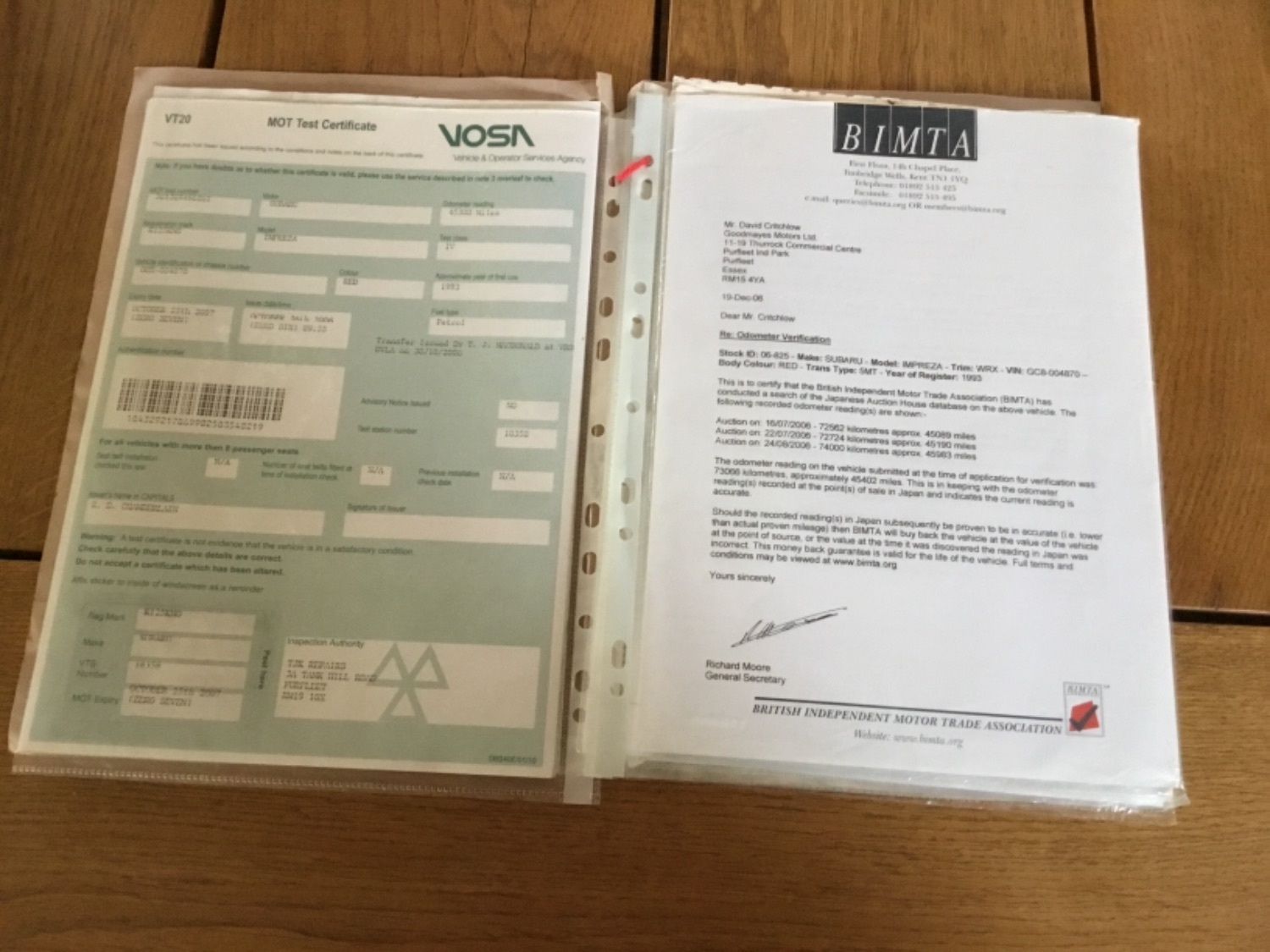 Massive folder of previous mots , receipts & even the original bill of sale when imported in 2008 for £3995 🤣