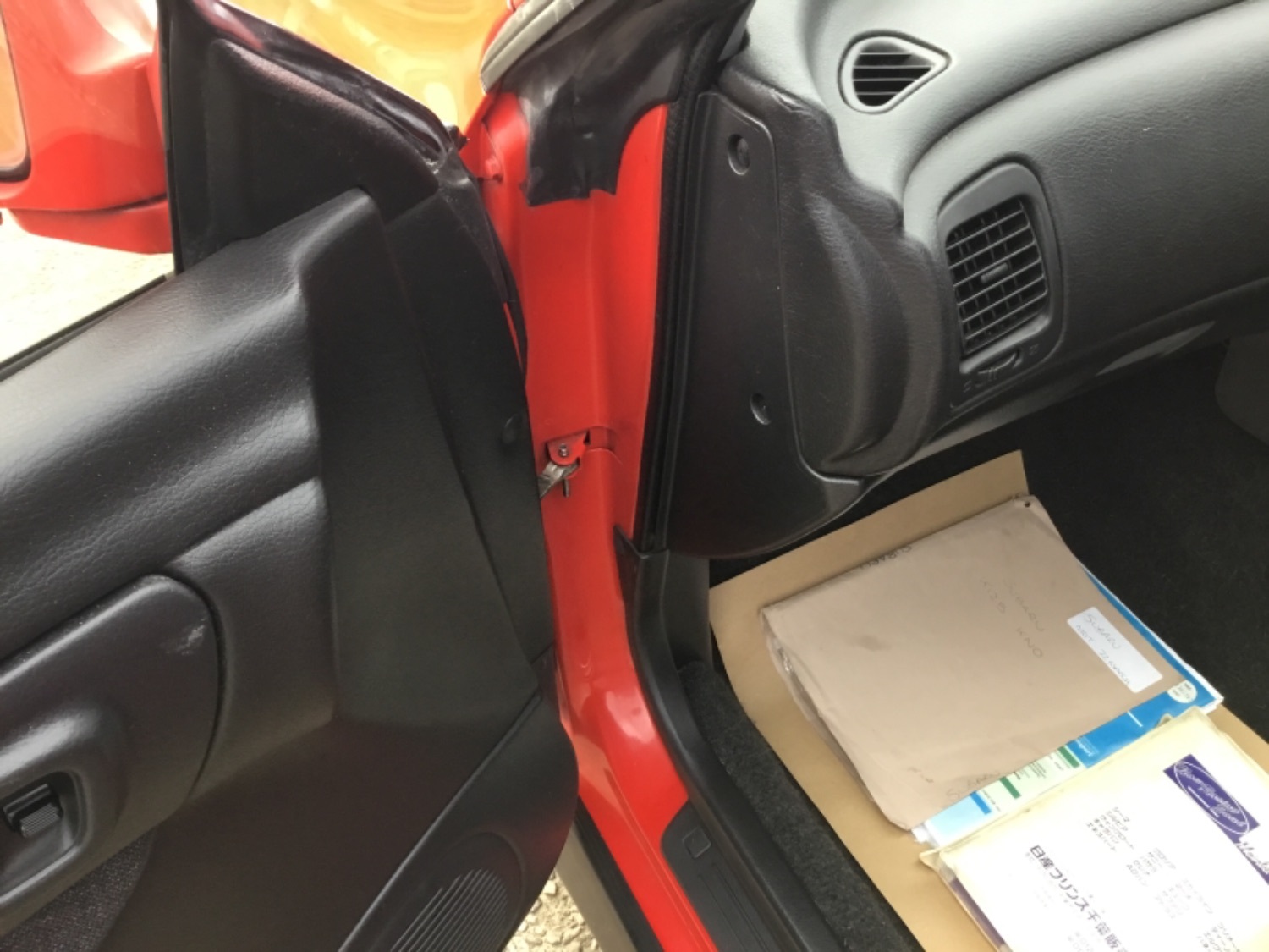 Both A post pillars where wind deflectors had been fitted