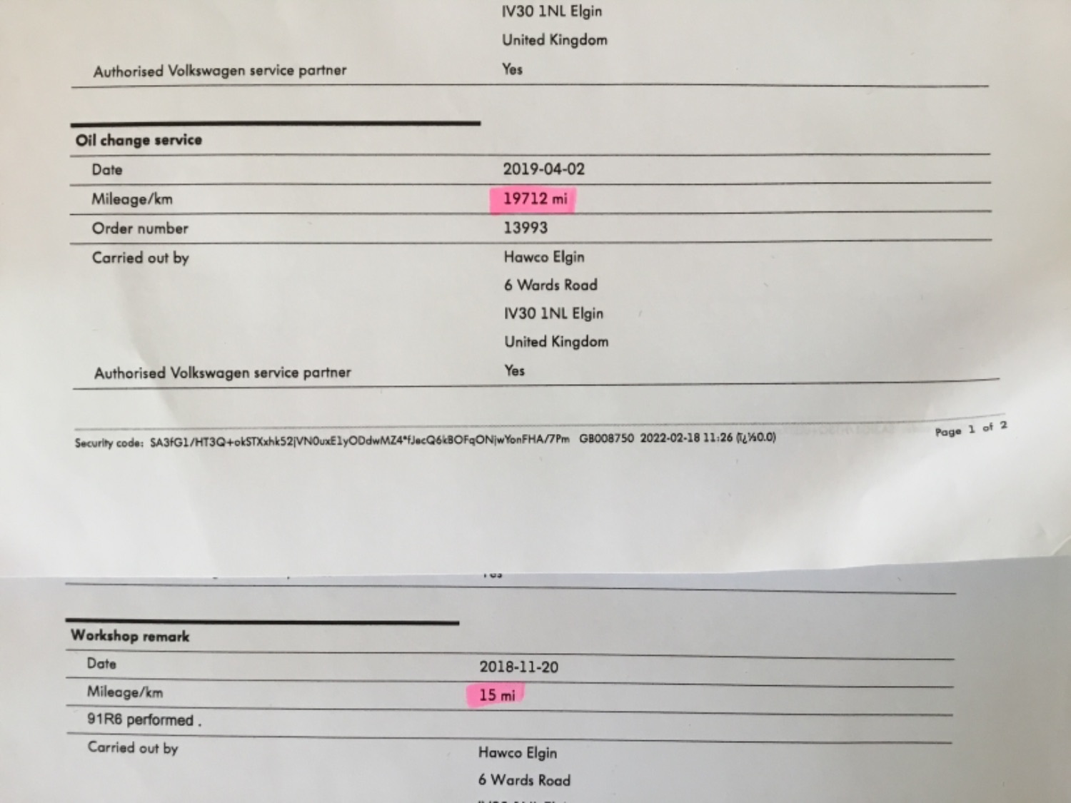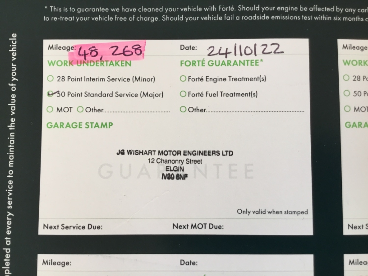 Full Service History ( 5 service stamps )